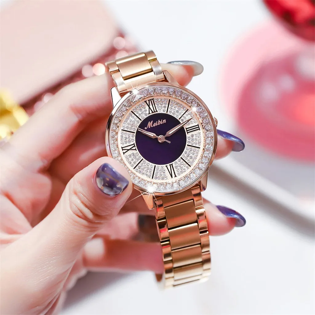Featured Women Full Rhinestone Dial Fashion Ladies Quartz Wristwatches Unique Clock Luxury Alloy St