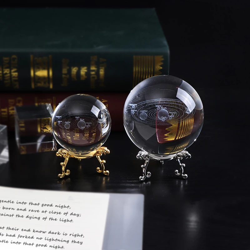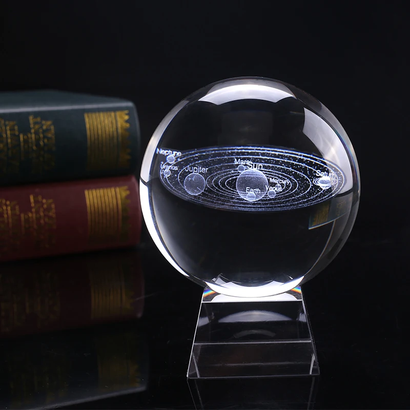 TOP 8 cm Diameter Miniature Solar System Model Crystal Ball Laser Engraved Planet Glass Craft Home Deco