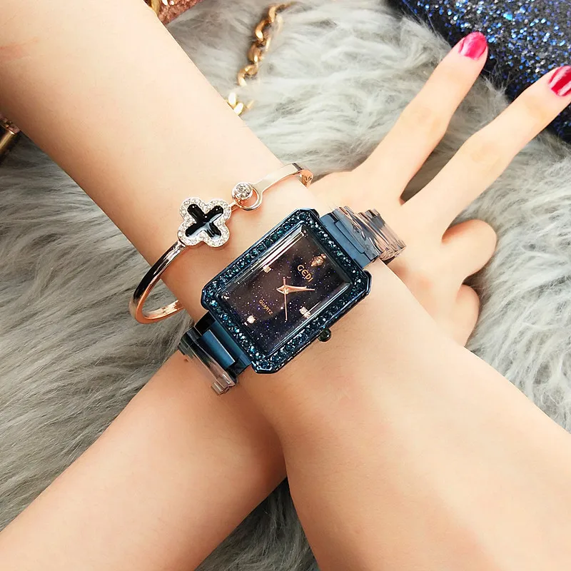 Review 2018 Luxury Brand Women Wrist Watch Stainless Steel With Glass Japanese Movement Square Plated Wate