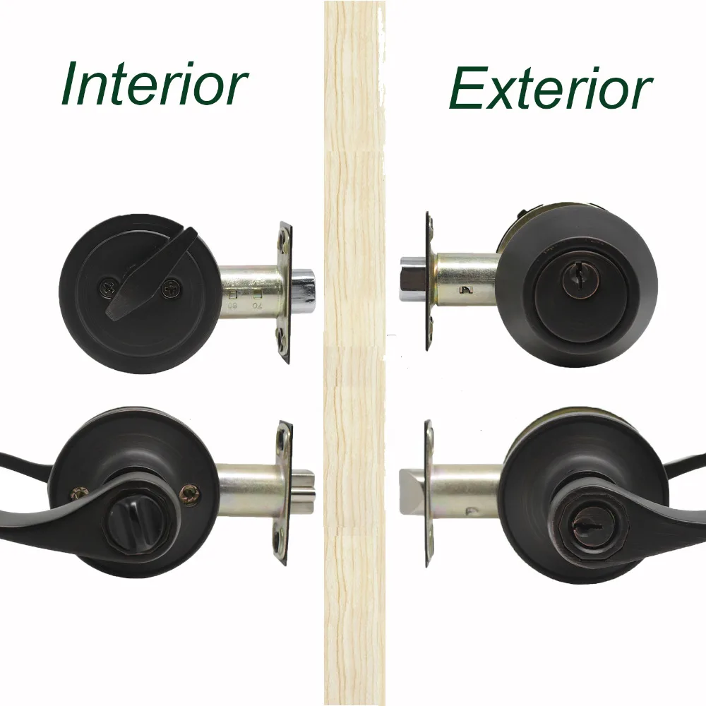BEST QUALITY Probrico Interior/exterior Door handles Oil Rubbed front back Levers with Deadbolt Lock Keyed Alike