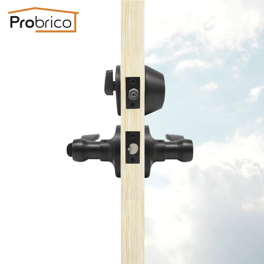 HOT SALE Probrico Interior/exterior Door handles Oil Rubbed front back Levers with Deadbolt Lock Keyed Alike